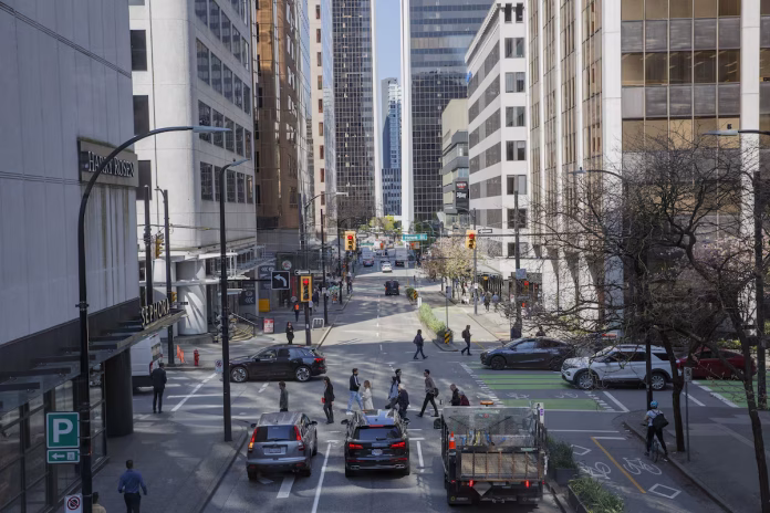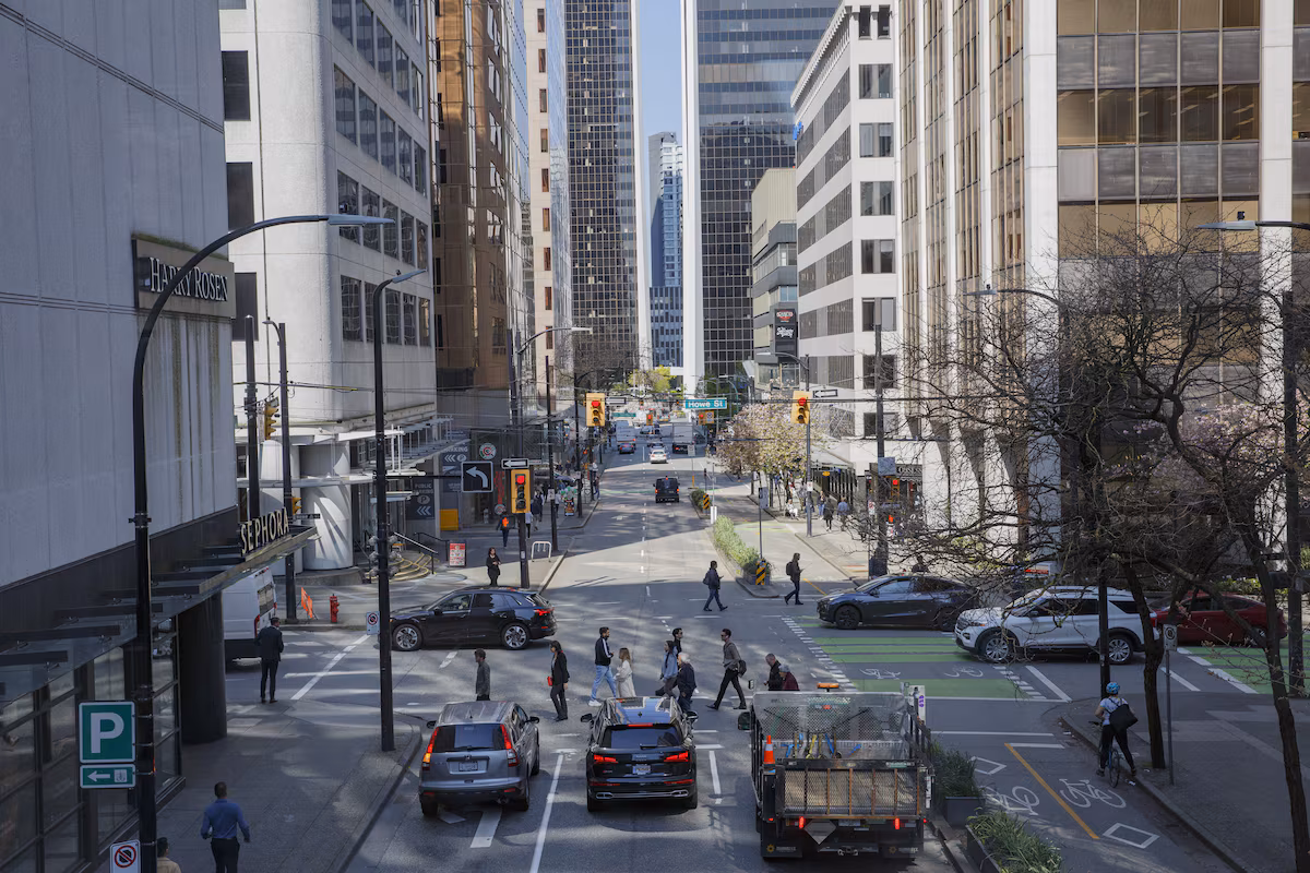 People cross a busy intersection in Vancouver’s shopping district.Isabella Falsetti/The Globe and Mail