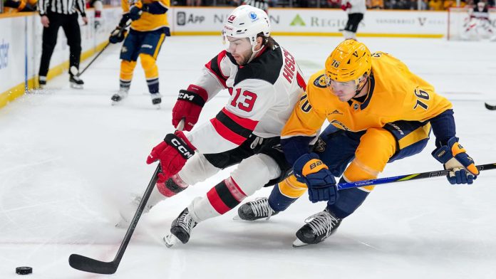After Nashville scored twice in the second period to tie it, Hischier gave New Jersey a 3-2 lead on the power play at 14:07 of the third with a deflection of a shot from the left face-off circle by Hughes.