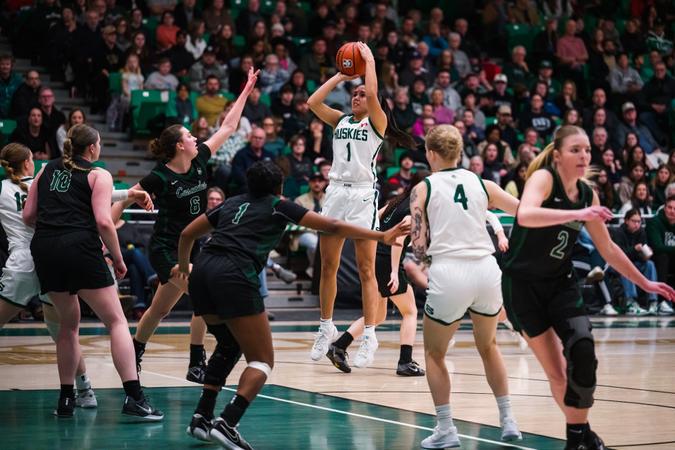 Following a slow start in the opening minutes, Saskatchewan quickly took control after finding the advantage in their transition game, opening with an 8-0 run. From there the Huskies scoring depth took centre stage as the team built a 51-22 halftime lead and never looked back.