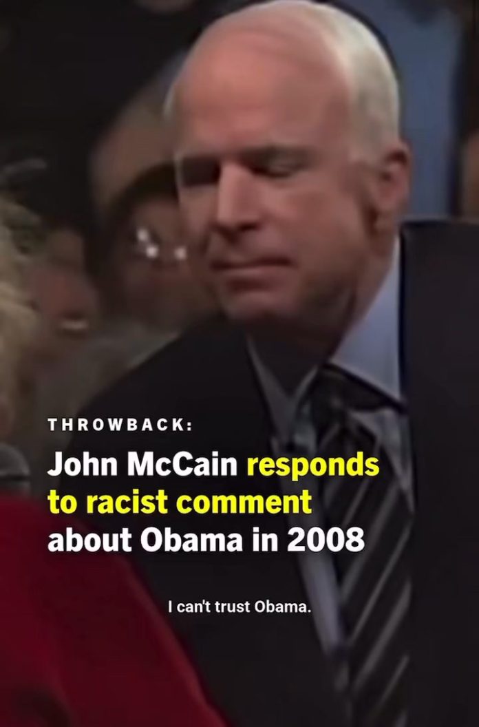 In 2008, less than a month before the election, Sen. John McCain took a political risk to defend his opponent, then-Sen. Barack Obama, against a racist attack by one of HIS own supporters 🥺