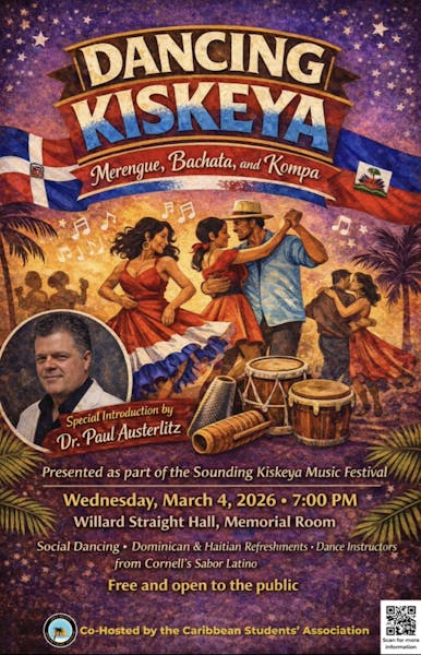 The event, titled “An Island in Dance: Merengue, Bachata, and Kompa,” included a historical and musical introduction by Dr. Paul Austerlitz — ethnomusicologist in Afro-Caribbean music and experienced jazz instrumentalist — followed by an immersive social dance instructional by members of Cornell’s Sabor Latino. There was also an abundance of Dominican and Haitian refreshments in the hall, inviting participants to recharge after sweating it out on the dance floor. As Cornell’s music department hosts the Sounding Kiskeya Music Festival this first week of March, this was only one of the myriad events — ranging from concerts and dance nights to scholarly talks and colloquia — focused on discussing and elevating the interwoven musical and cultural traditions of the two countries representing Kiskeya (Hispaniola). Despite my utter deficit in the art of dancing (my hips certainly do lie!), the night was nothing short of a blast, rewarding both as a learning experience and as a way to let loose and participate in the vibrant, welcoming Latin dance community.