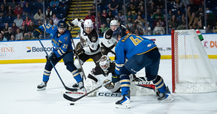 However, the scuffling visitors could not find another one against the confident Springfield goaltender, and Hunter Skinner closed the proceedings with an empty-netter with just 22 seconds to go. Zherenko’s third straight win came on a night where the veteran backstop denied 31 of 33 attempts for his 50th career win for the T-Birds.