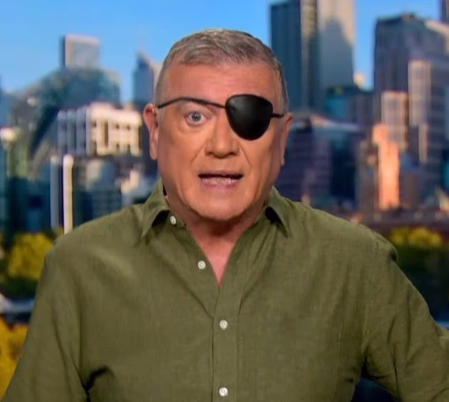 ‘I feel as stupid as I look, Shirvo,’ the showbiz reporter said, pointing to the large black eyepatch before adding, ‘So please ignore that.’
